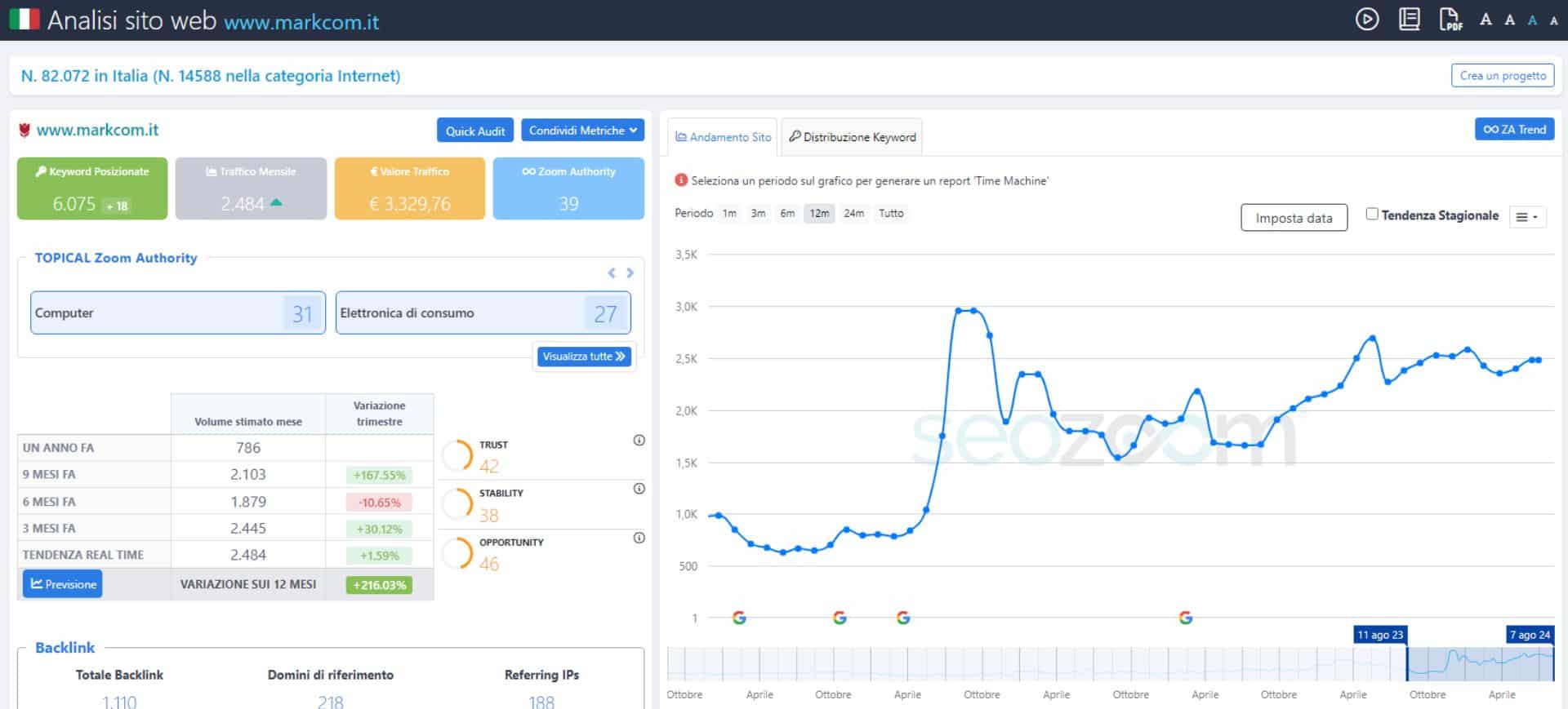 - Audit tecnico: analizziamo la struttura del sito, la velocità di caricamento, l’ottimizzazione mobile e la configurazione dei file robots.txt e sitemap.xml.